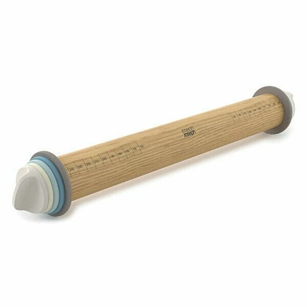 Schluss mit den Fragezeichen! – Mit der cleveren Teigrolle von Joseph Joseph stellt sich die Frage der richtigen Teigdicke nicht mehr. Vier unterschiedliche Aufsteckringe, die in ihrer Farbgebung an pastellfarbene Mineralien erinnern, helfen bei der korrekten Einstellung des Rollgrades. Gleichmäßig und eben, rollen Sie Ihren Keksteig, Pizzaböden oder Lasagneplatten.