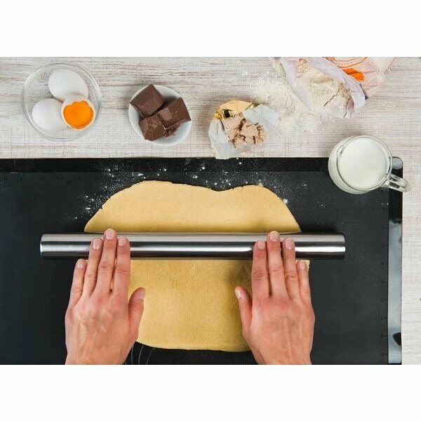 Ein Nudelholz gehört zur unverzichtbaren Küchengrundausstattung. Ursprünglich wurde es aus Holz hergestellt. Diese moderne und geradlinig geformte Teigrolle von Lurch ist allerdings aus Edelstahl und rollt klassischer Teige für Kuchen, Pizza, Tartes, Quiches, Strudel, Nudeln, Brote und Plätzchen glatt und immer dünner – ohne dass der Teig daran haften bleibt.