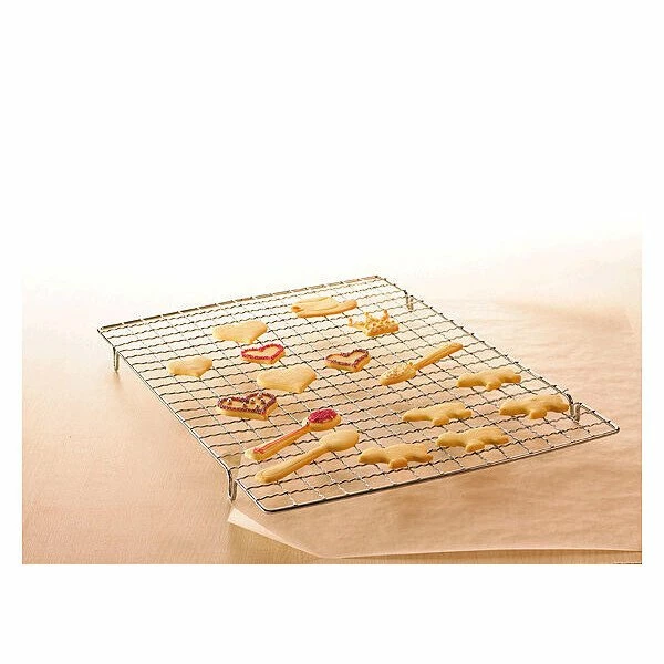 Damit es besonders knusprig bleibt, sollte Gebäck nach dem Backen auf einem Gitter auskühlen. Auch für Pralinen oder zum Verzieren von Kuchen, Torten oder Keksen ist das Auskühlgitter von RBV Birkmann optimal geeignet. Es besteht aus verchromtem Draht und steht auf vier Füßen.