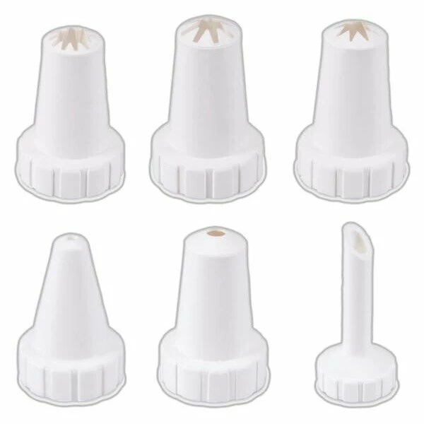 - besteht aus einem Spritzbeutel und sechs unterschiedlichen Tüllen