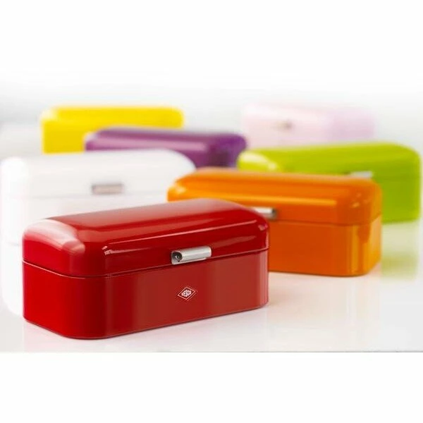 Mit dem Brotkasten Grandy von Wesco holst du dir einen Hauch 50er-Jahre-Flair nach Hause. Die rechteckige Form mit abgerundeten Ecken und dekorativer Prägung ist ein hübsches und zugleich praktisches Retro-Schmuckstück.