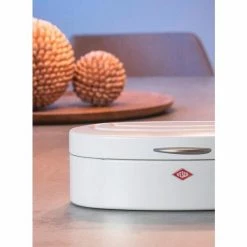 Mit dem Brotkasten Single Elly von Wesco holst du dir einen Hauch 50er-Jahre-Flair nach Hause. Die ovale Form mit dekorativer Prägung ist ein hübsches und zugleich praktisches Retro-Schmuckstück.
