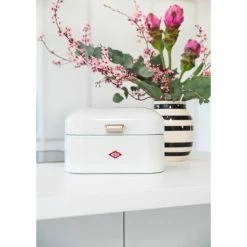 Mit dem Brotkasten Single Grandy von Wesco holst du dir einen Hauch 50er-Jahre-Flair nach Hause. Die rechteckige Form mit dekorativer Prägung ist ein hübsches und zugleich praktisches Retro-Schmuckstück.